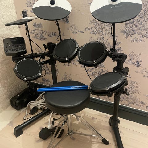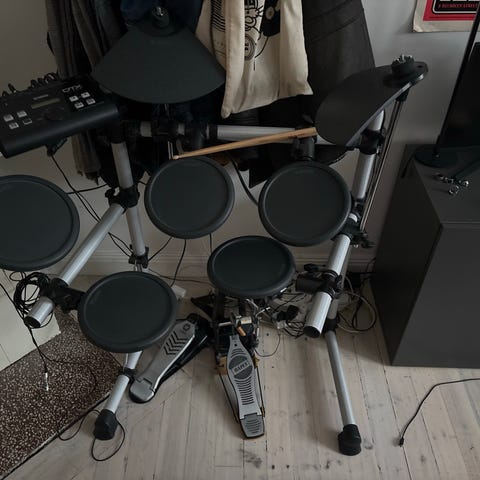 Alesis Debut Kit elektroniskt trumset. Tillhörande pall, trumpinnar, hörlurar och software ingår! Trumsetet har en modul med flera ljudinställningar. Ej använt, kommer i bruten originalförpackning.