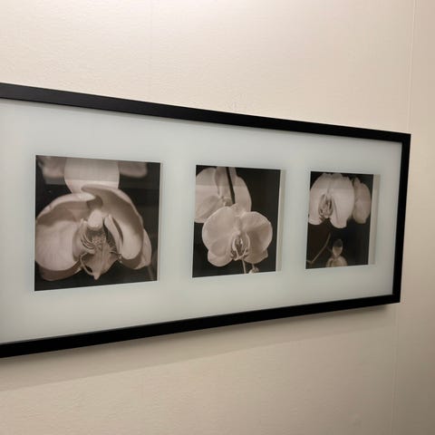 Väggdekor/tavelram/ram/tavla med motiv av en brygga och berg i bakgrunden.