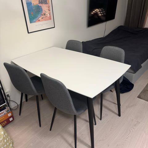 Mio Matgrupp med 6 stolar Vit med grå sits