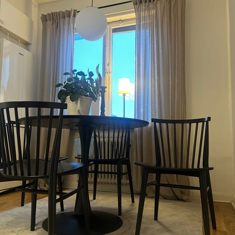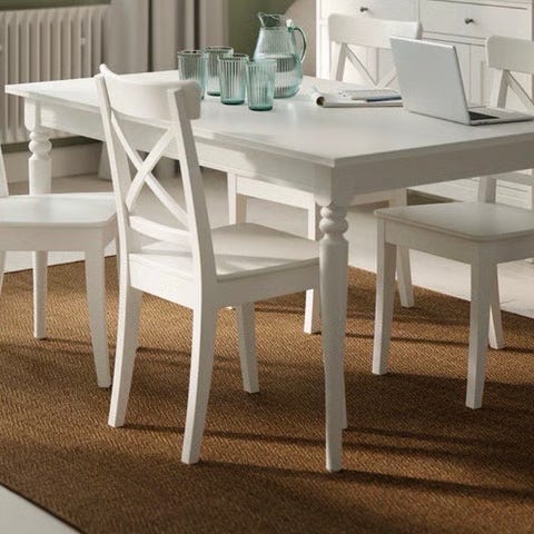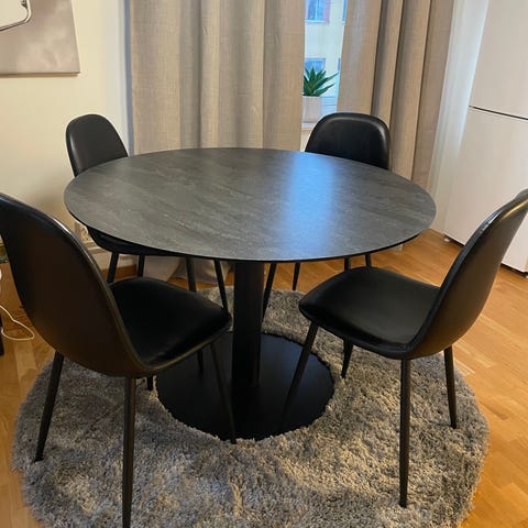 Bordets mått är B 90cm x L 180cm. Passar för matrum eller kök och erbjuder sittplatser för sex personer.