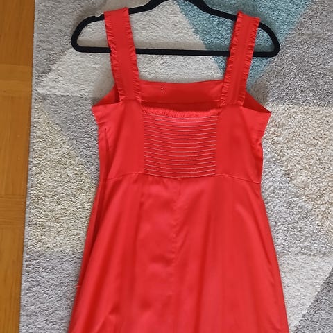 Färgen på klänning är mer korall. Har två olika längder så när man rör sig så ser det ut som vågor. 🌸
