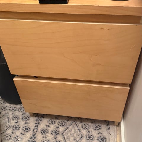 Hurts / sängbord i ekfaner från IKEA HEMNES. Har borrat ett hål till eluttag och kontakt.