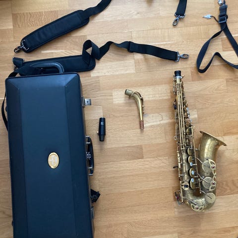 - Inkl. lätt fodral med ryggsäcksremmar, Yamaha 4C munstycke, saxofonrem och korkfet