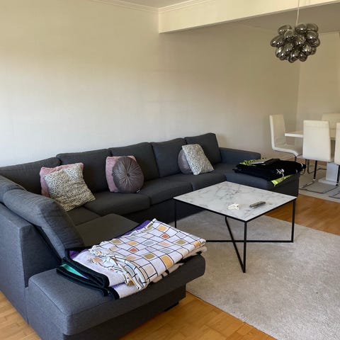Säljer även taklampa, sittpuff, matta och kuddar/filtar+soffbord .