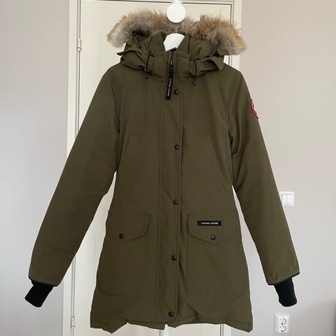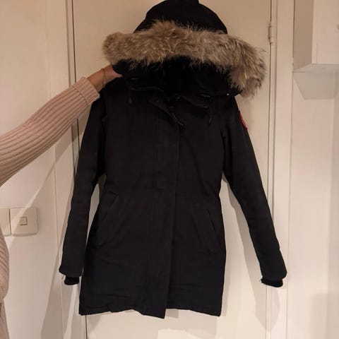 Varm brun parka från Canada Goose i storlek S, använd men i bra skick.