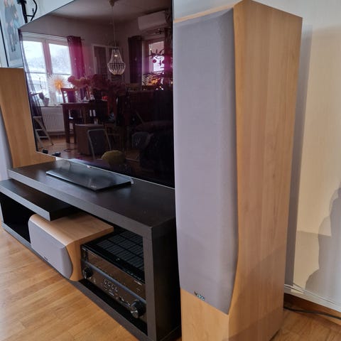 Haft den i ca 2 veckor. Den kom med min Tv och jag har inget behov av den. Denna kommer med ett väggfäste som man kan sätta på väggen. Annars kan man ställa den också som jag har gjort på golvet men den står inte upp av sig själv.