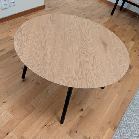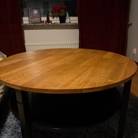 Runt soffbord från IKEA. Ben i stål. Inga fula märken och står stabilt!