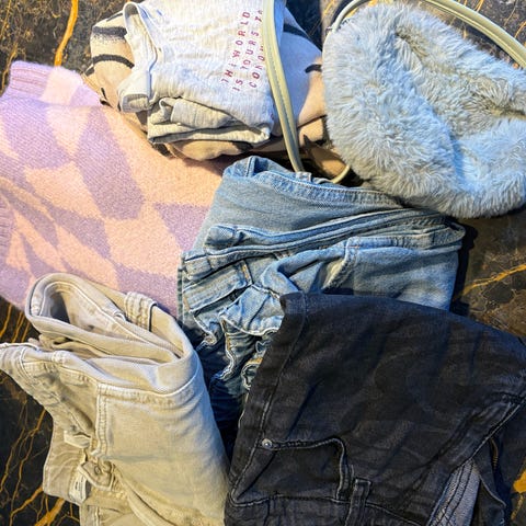 Jättefina kläder som nytt alltihopa. Från storlek 140-152. Blusar, klänning T-shirt tjocktröja kjol short. Blandat i detta. 8 plagg totalt
