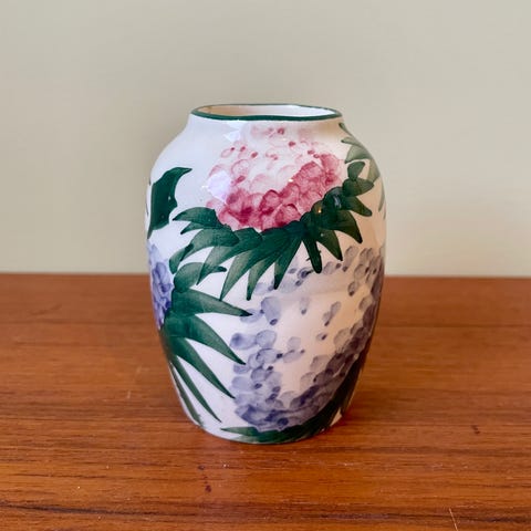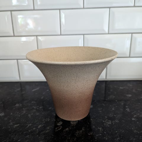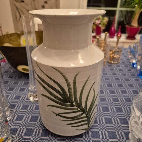 Vacker handgjord keramikvas, signerad A R i botten. 8,5 cm hög. Liten, tunn flisa har lossnat från botten (se bild nr 6), påverkar varken utseende eller funktion. För övrigt i mycket fint skick. Urna. Vas. Keramik. Hantverk. Konsthantverk. Konst.