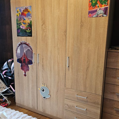 Fint garderob. Har monterat av en dörr, men den finns kvar. Tre hyllor + klädsstång