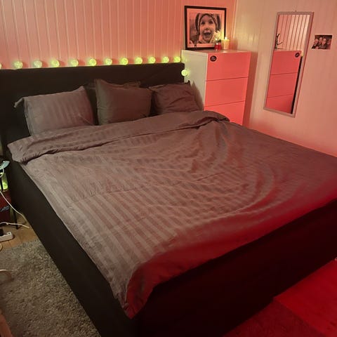 Kontinentalsäng 180 cm mörkgrå färg av märket Dreamzone. Haft bäddmadrass och madrasskydd som bevarat sängen i gott skick.