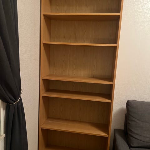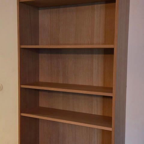 Bokhylla med flyttbara hyllplan.