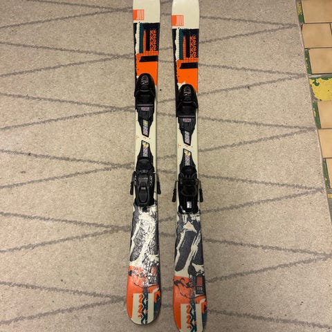 Skidor, Völkl Mantra Jr, twintip, 138 cm. Använda, men i bra skick. Pjäxor storlek 22,5 och stavar 110 cm.