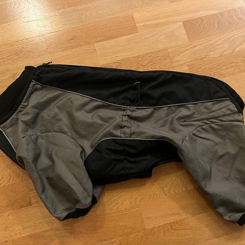 Rosa fleece hundoverall med huva och rosetter