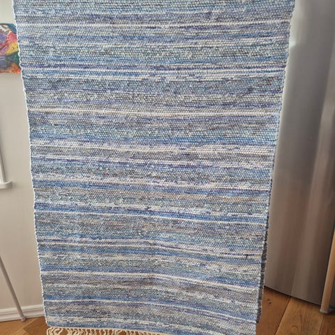 Trasmatta i brunt, lila, gult, orange, och svart.