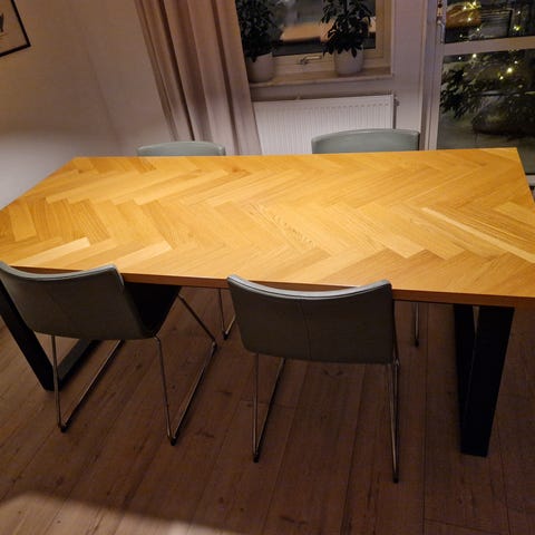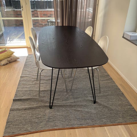 Melville matbord (köpt från Hultarps möbler i Nässjö) med tvådelad bordsskiva med svart stabilt metallunderrede. Nypris 10000:- (köpt för 4år sedan).