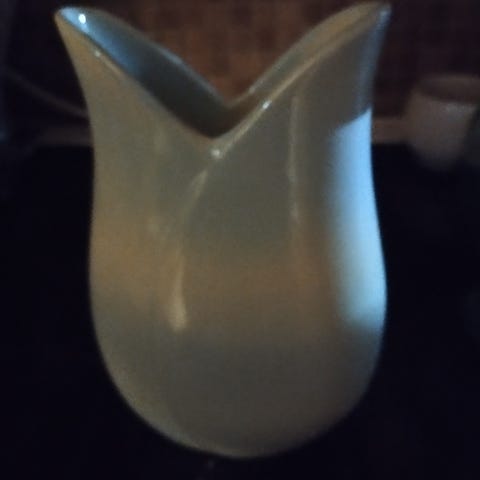 Bay W Germany Keramikvas i grön färg med cirkelmönster. Vasens yta är glaserad, och den har en oval form med en öppen topp. Passar för dekorativa ändamål eller som blomvas.