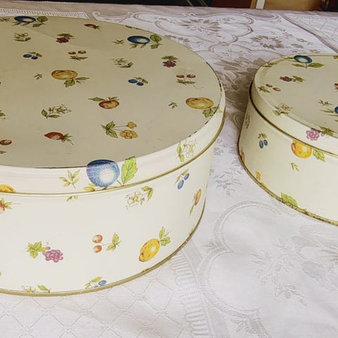 Olika plåtburkar, Kelloggs, Uncle Ben och en för spagetti