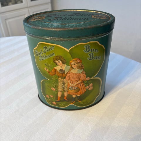 Plåtburk mwd motiv av ett Gammalt snyggt kylskåp