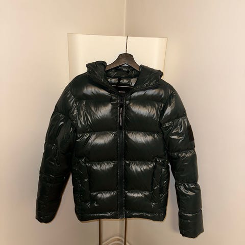 Peak Performance dunjacka i storlek L, mörkblå färg.