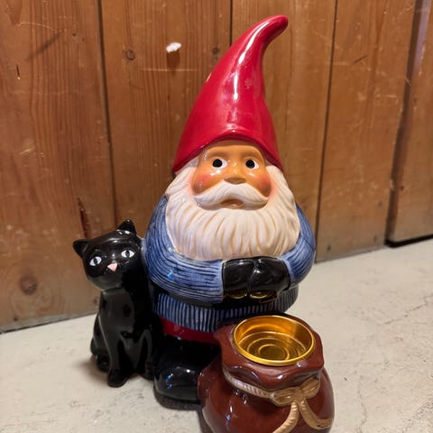 Ett ljus i form utav en tomte med tomteluva och halsduk! Jättesöt i rött och vitt.