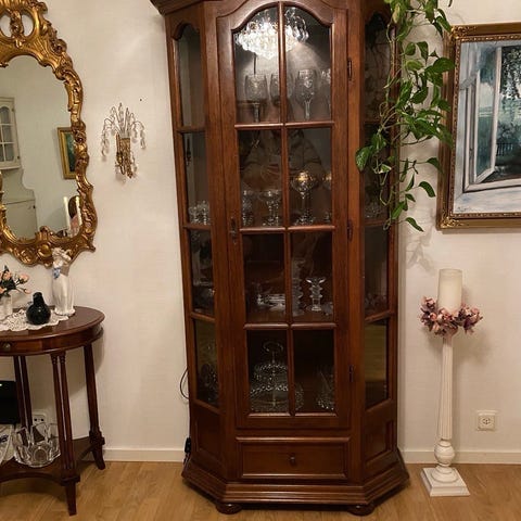 Lantlig vitrinskåp av furu