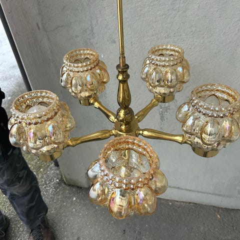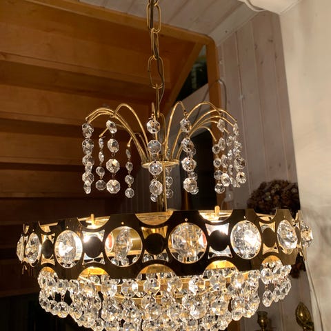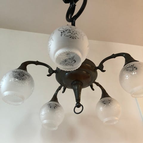 En fin äldre mässingslampa taklampa från 60 70 talet med glaskupor, utbytt sladd inte billigt.