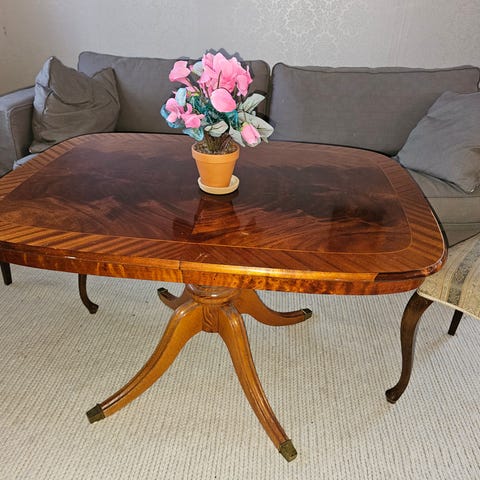 Ett mycket spännande bord som kan användas som soffbord och även höjas och förlängas för användning som matbord. All mekanik fullt fungerande!