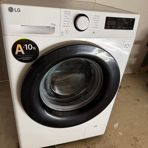 LG frontmatad tvättmaskin med modern design och digital display. Maskinen har ett tydligt kontrollpanel och flera tvättprogram. Utrustad med en stor trumma och fack för tvättmedel och sköljmedel. Levereras i originalförpackning.