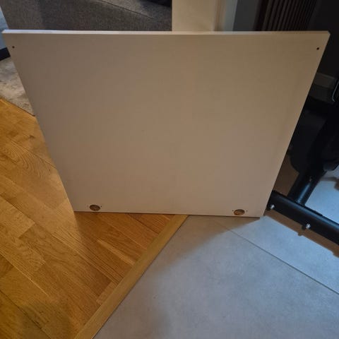 Den ena dörren har ett pyttetlitet skav på metallramen som knappt syns, speciellt inte om man sätter det nedåt. Se bild.