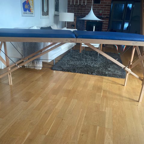 Köpte den för att vi tänkte ha massagesessions på den men den blev/blir inte använd. Nu efter flytt känner vi att den kan göra nytta hos någon annan : )