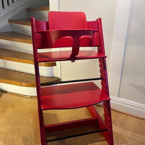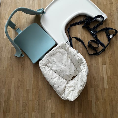• Säkerhetssele (harness) i beige – för extra trygghet under måltider.
