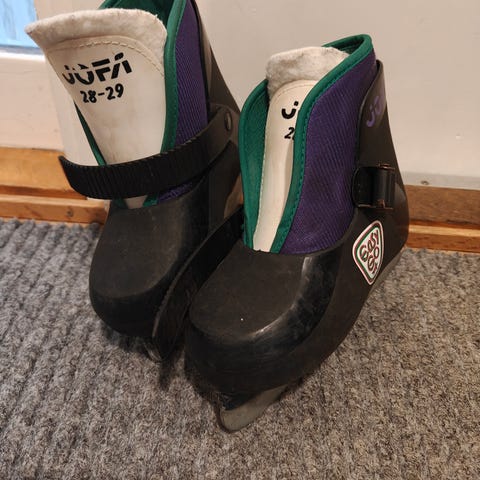 Jofa 606 ishockeyskridskor i svart färg. Skor med snörning och vit skridskobladsfäste. Passar för ishockey och har en robust design.