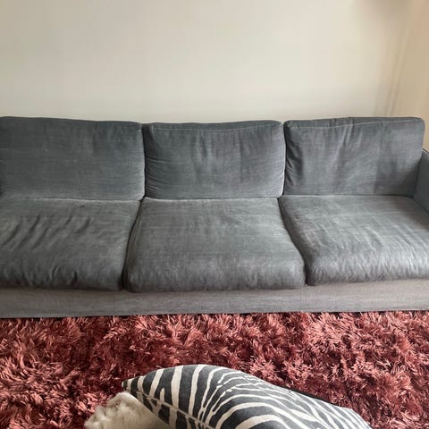 Klädseln har missfärgats vid tvätt, vilket resulterat i två olika gråtoner. Ser ok ut när den är klädd men finns delar där det blir mer synligt, vänt det ’värsta’ utåt på bild nr 7.