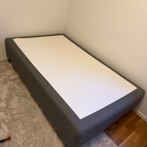 Ikea resårbotten Skotterud med svarta ben. Medium fast skön och hård säng. Använd i två år ingen slitage eller fläckar. Det har funnits en madrass på självklart hela tiden.