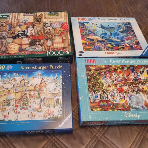 Ett 20-tal pussel i mycket bra skick säljes. Huvudsakligen Ravensburger och 1000 bitar. Finns även några 500 bitars.