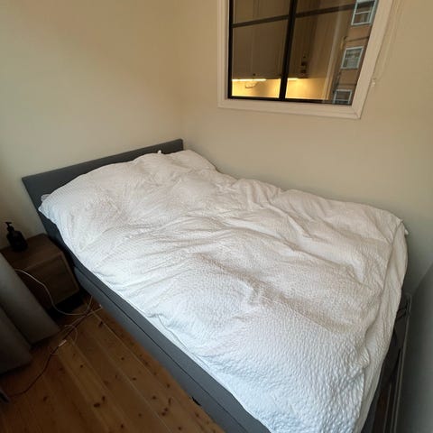 Kontinentalsäng från IKEA i mycket gott skick. Endast små skavanker som kan ses i bilderna.