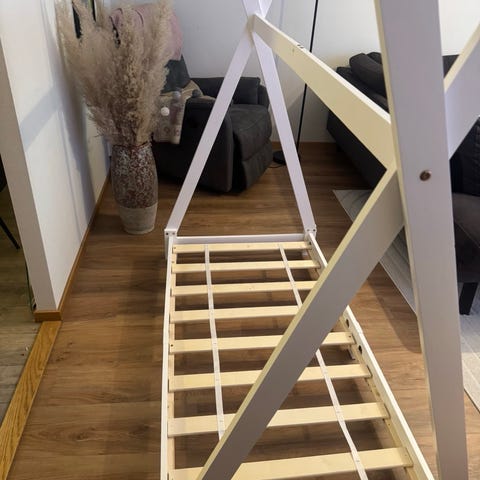 Komplett barnsäng. Madrass: 180x90 Höjd: 145 cm Längd: 204 cm Djup: 111 cm Inga skavanker! Transport kan ordnas billigt.