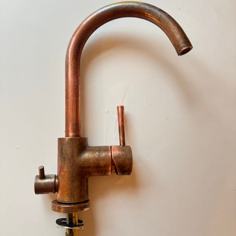 Kran på sidan för avstängning av vatten till diskmaskin.
