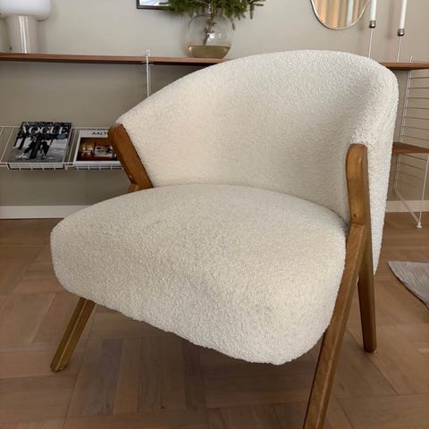 Fåtölj HUNDESTED offwhite teddy/natur ekfärgad