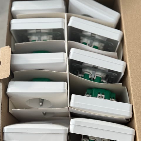 Helt nytt Schneider Exxact Primo Infälld 3-vägs kombi eluttag/vägguttag. Jordad. Praktisk och smart. Orignalpris 250 kr. Kapacitet på 16A framtill och två sidomonterade klass II uttag på 2,5A.
