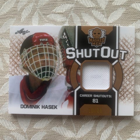 Inkluderar märkt Fibrosport-mask (Canada), ytterligare handmålade tidiga målvaktsmasker, samt klassiska målvaktshandskar från CCM (Canada).