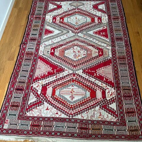 Fin persisk matta i artificiell silk. Vackert grön-brunt mönster. Storlek 230x160 cm. Mattan har visst bruksslitage på fransarna men är i övrigt OK skick. Säljes i befintligt skick. Hämtas i Solna.