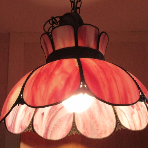 Superläcker taklampa i Tiffany stil. Lampan är en original reproduktion handgjord i USA.