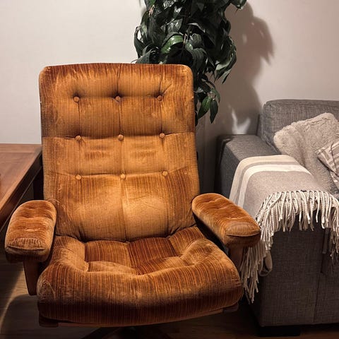 Vintage fotölj som är köpt second hand och delvis renoverad.