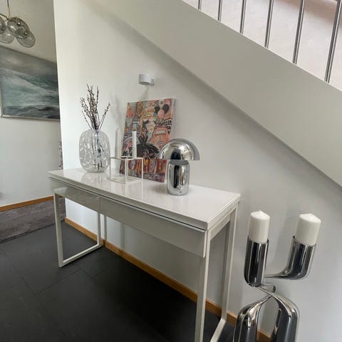 Fin ljus arbetsbänk med en låda och hyllplan undertill. Funderar även som sideboard, högt matbord eller skrivbord.