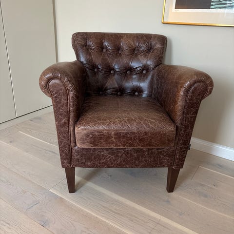 Skinnfåtölj i Chesterfield -stil