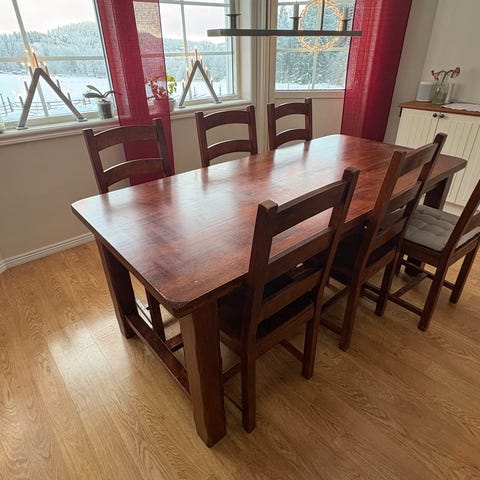 Matbord massiv al med extra skiva och 5 stolar