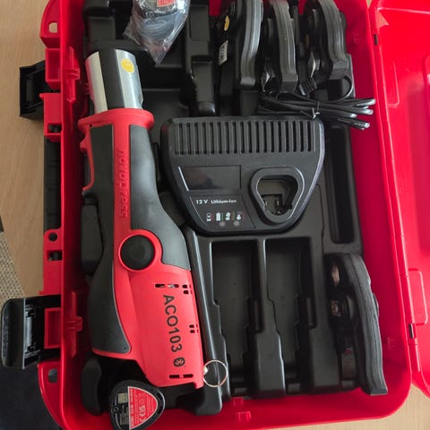Jag fick maskinen i samband med att jag bytte firma, den är ca 4 år gammal men inte använd det senaste året. Batteri, laddare och väska finns med.