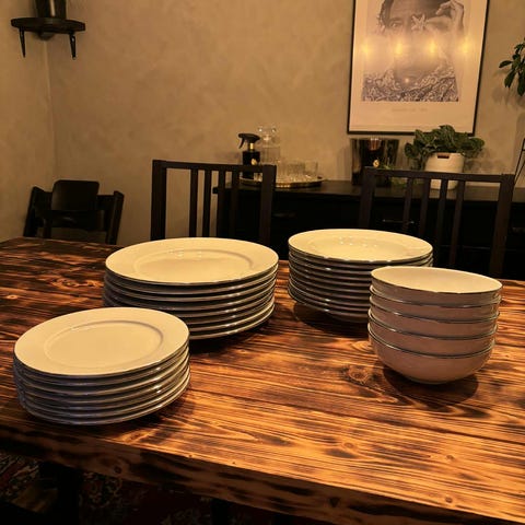 Rörstrand i modellen Corona. 5 st tallrikar med storlek 29 cm. Corona porslinsserie är formgiven av Jonas Bohlin för Rörstrand och är en stilfull servis. Tallrikarna är tillverkade i porslin och har en enkel vit design med en silver kant runt. Väldigt fint skick. Skickas ej.